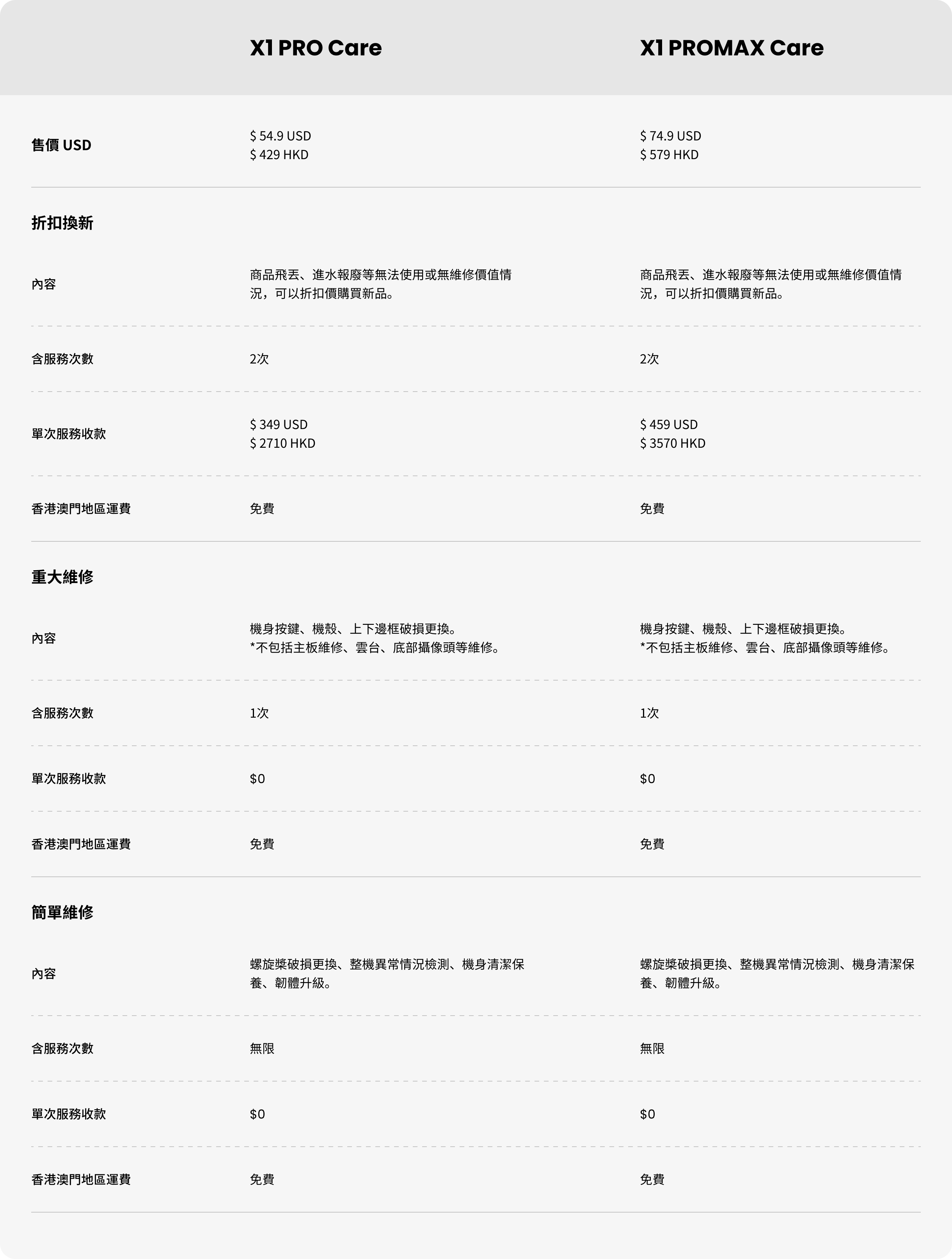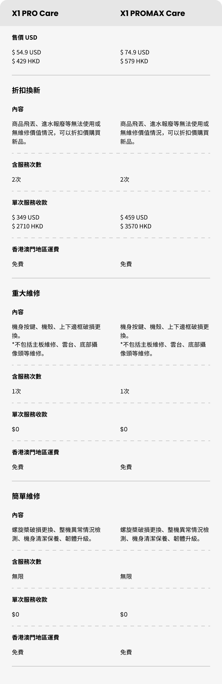 目前港澳版 HOVERCare 僅支持官方授權渠道購買的 X1 PRO 和 X1 PROMAX 主機,且主機激活時間不超過 7 天;電池、配件、充電線、其他主機型號、或是主機激活時間超過 7 天,皆不在服務範圍內。如您的設備激活時間在 2025年1月8日以前,且激活時間已超過7天,請於2025年1月15日以前,聯繫官方客服購買HOVERCare(email: support@hoverair.com)。