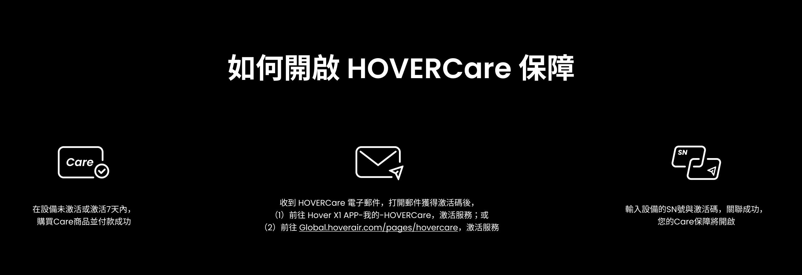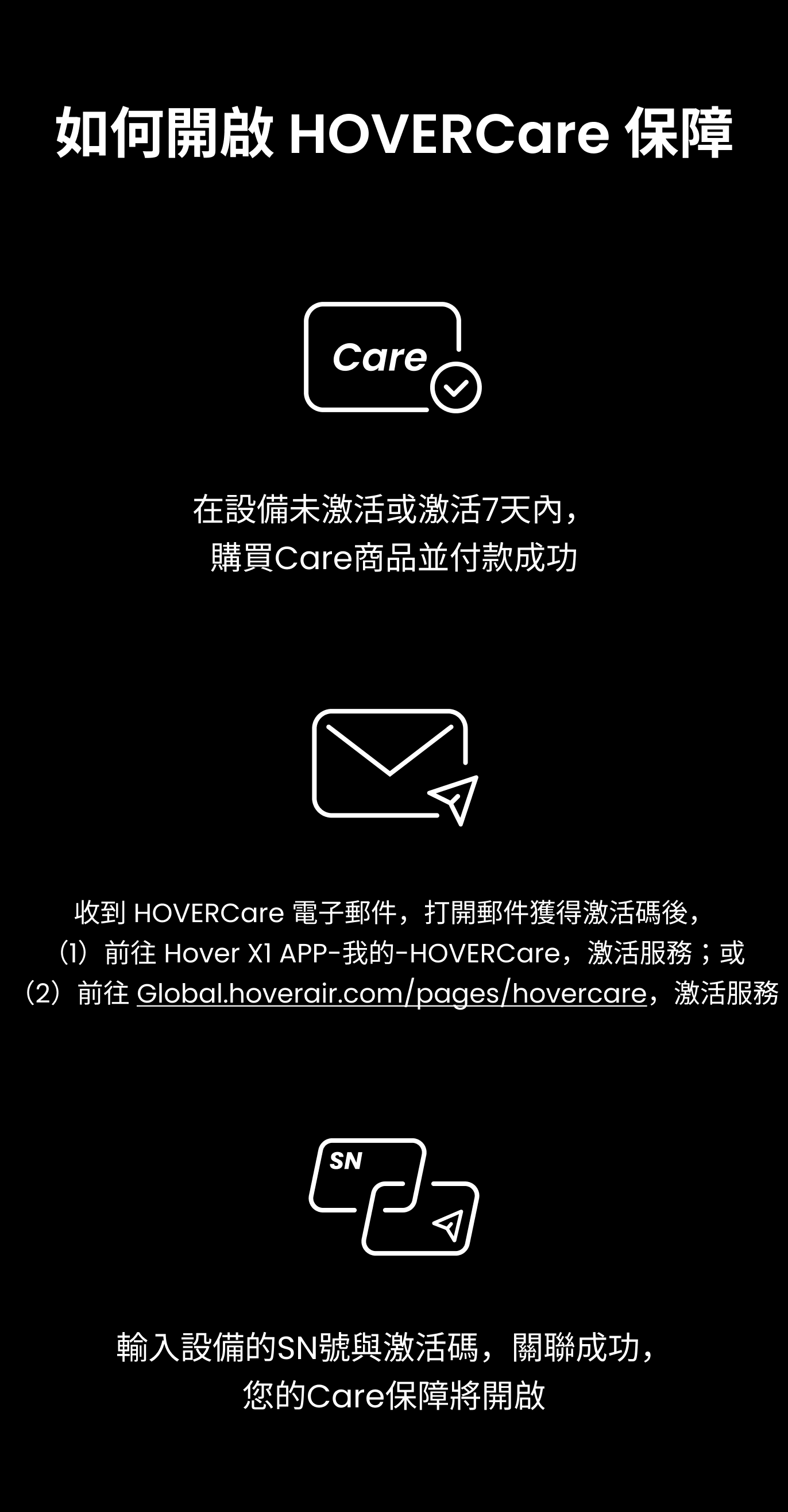 按照流程激活您的主機與 HOVERCare 後,HOVERCare 保障即刻生效。